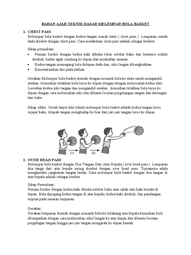 Cara melempar bola basket dari atas kepala (overhead pass). Overhead pass merupakan metode melempar bola dari atas kepala( overhead). Mengoper atau melempar bola terdiri atas tiga cara yaitu melempar bola dari atas kepala (over head pass), melempar bola dari dari depan dada (chest pass) yang . Teknik ini digunakan untuk melempar bola setinggi dada. Lalu, gerakkan bola ke atas dari belakang kepala dengan kedua tangan dilemparkan .