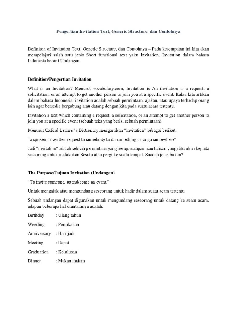 Posting Komentar untuk "Tujuan Teks Invitation - Invitation Text Pengertian Generic Structure Dan Contoh / (what is the text about?), maka jawabannya:"
